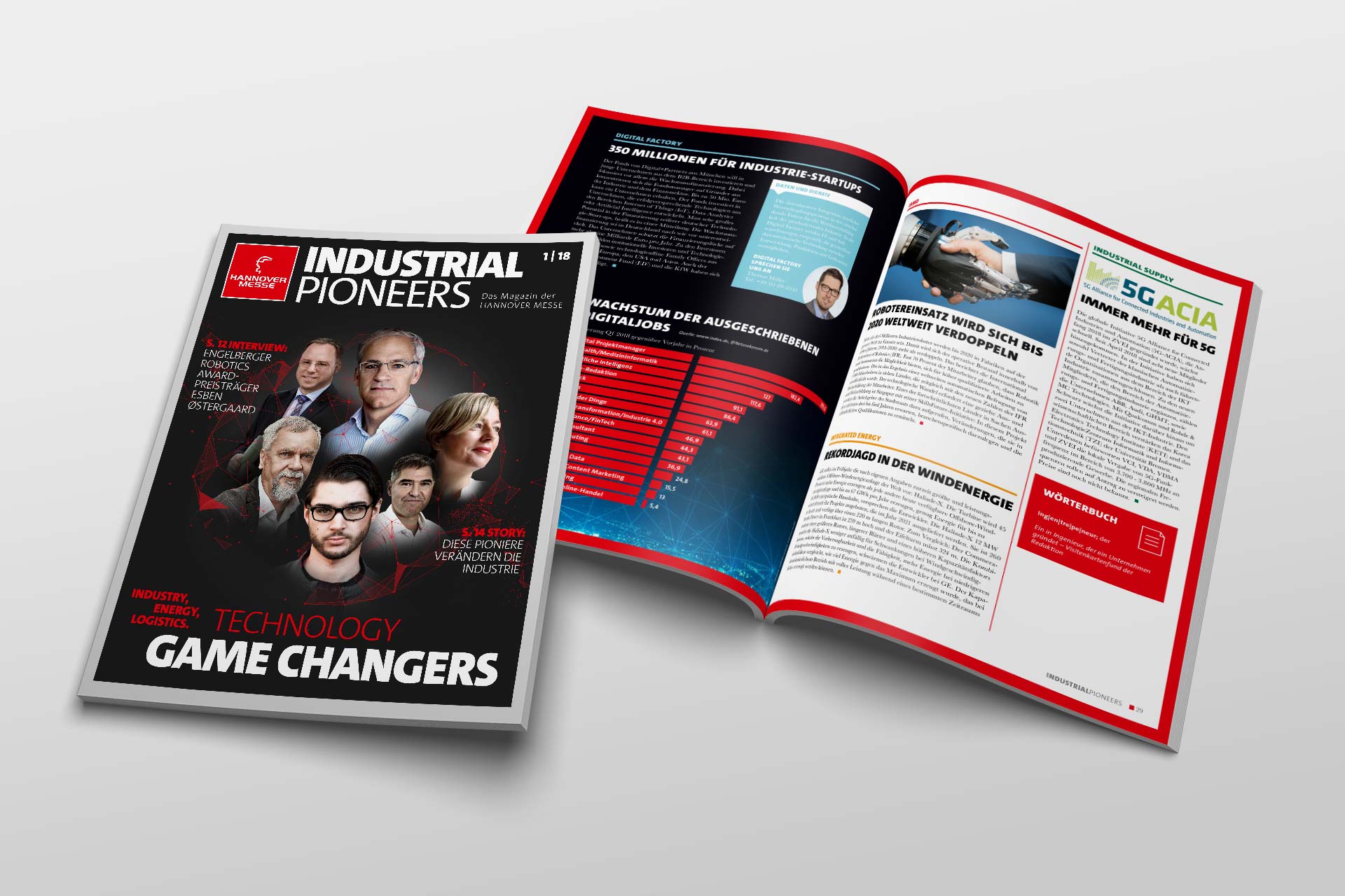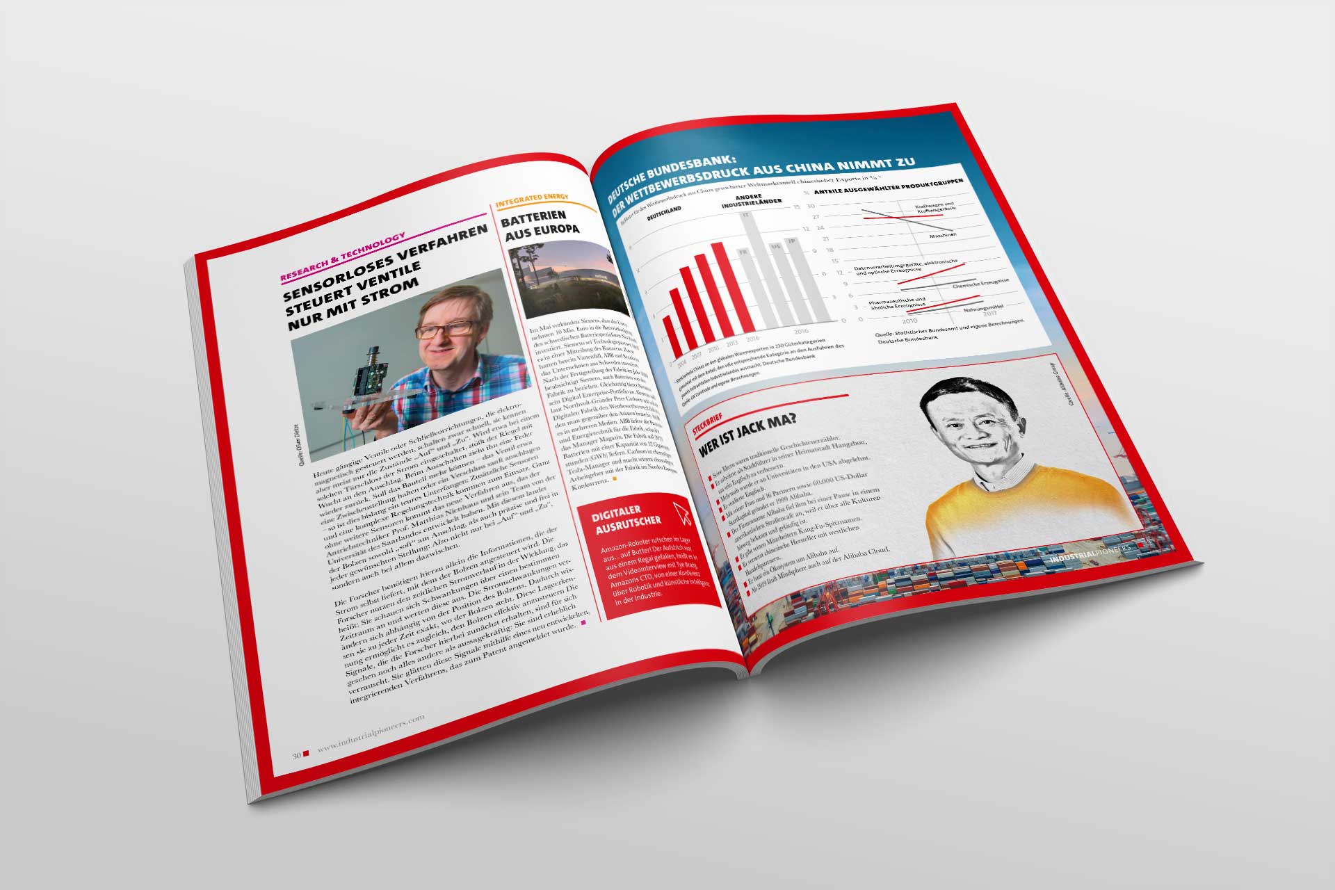 Die Gedanken dahinter Mailings und zu guter Letzt das Industrial Pioneers Magazin. Das ist das, woran ich mich immer bei diesem Kunden erinnern werde. Und von Ersterem gab es in den ganzen Jahren eine Menge davon. Editorial Design liegt mir aber tatsächlich mehr, weil man sich da gestalterisch austoben kann, was zumindest hier der Fall war, weil wir das initiativ präsentiert und am Ende auch umgesetzt haben.