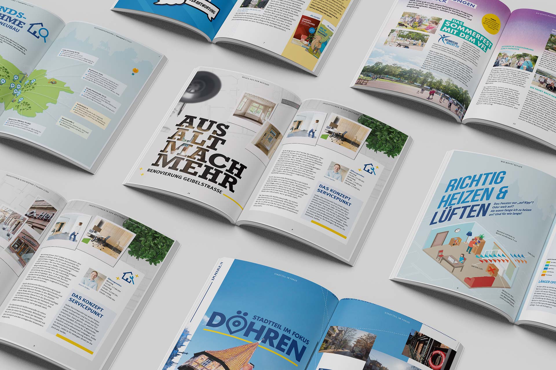 Der Gedanke dahinter Wow. Ich glaube, hier habe ich die meisten Arbeiten vorliegen. Das liegt nämlich daran, dass die Heimkehr Wohnungsgenossenschaft mein damaliger Kunde war als Art Director bei B&B. Dies ist hier eins der wenigen Projekte, wo alles final über meinen Tisch ging, damit alles wie aus einem Guss aussah, da das gesamte CD mit allem drum und dran ursprünglich von mir stammte. Das war eine schöne Zeit, da wir im Team richtig tolle Dinge entwickelt haben. Man kann sagen, dass die Heimkehr schon mein Baby war und ich mit einem weinenden und lachenden Auge mein Kind ziehen lassen musste, nachdem ich die Agentur gewechselt habe. Was wohl aus ihr geworden ist…?